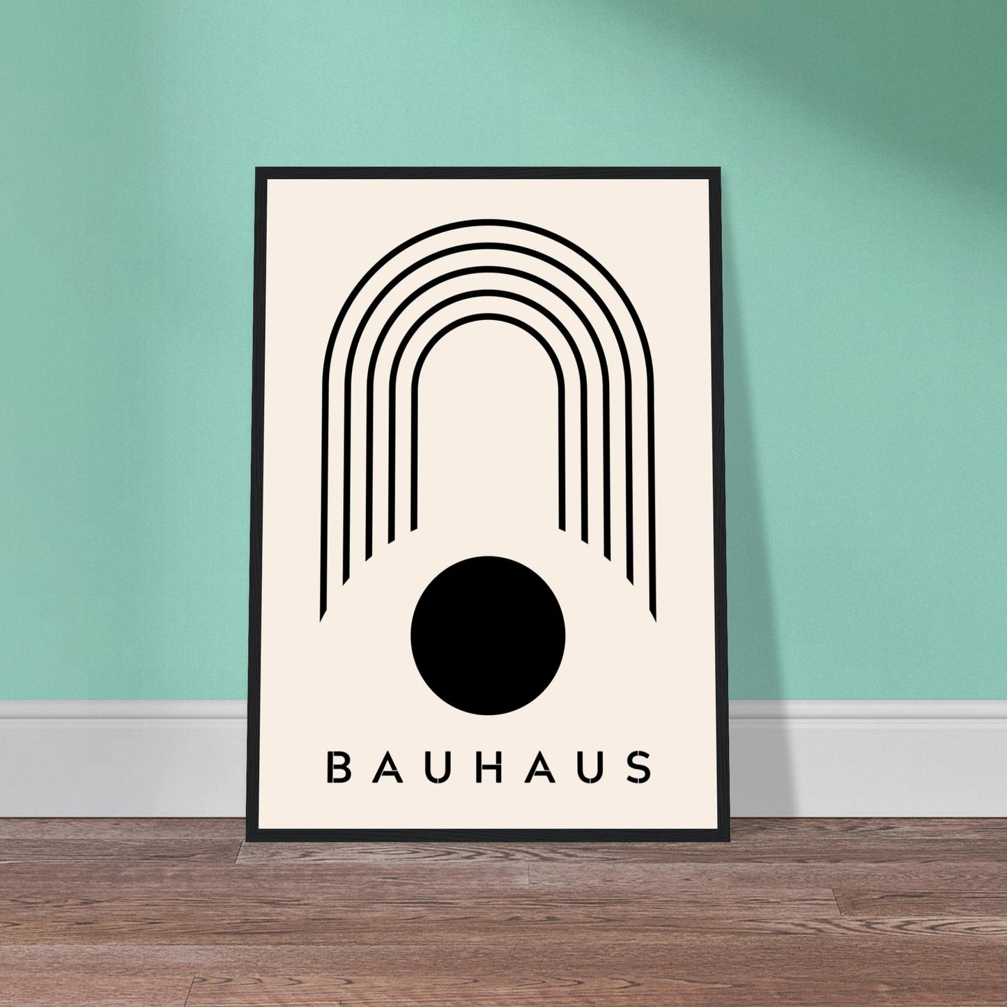 The Bauhaus style originated from the Bauhaus School of Design, founded in Germany in 1919 by architect Walter Gropius. It was revolutionary for merging fine art, architecture, and crafts into a unified modern aesthetic. The Bauhaus philosophy emphasized functionality, simplicity, and geometric forms, stripping away unnecessary decoration to focus on clean lines and purpose-driven design. Despite the school being shut down by the Nazis in 1933, its legacy shaped modern art, graphic design, and interior design worldwide. Bauhaus-style posters—characterized by bold typography, primary colors, and structured compositions—remain timeless icons of the modernist movement.