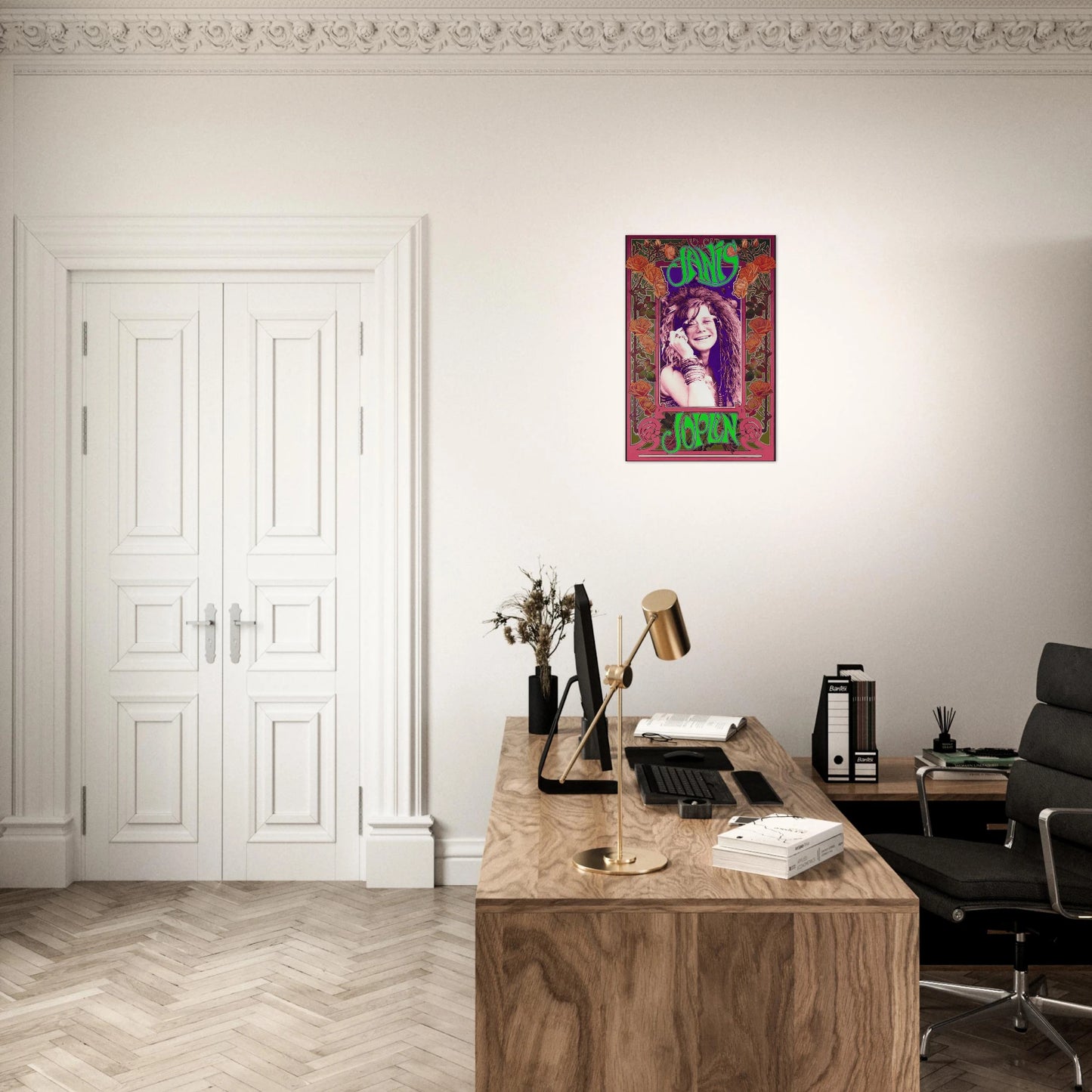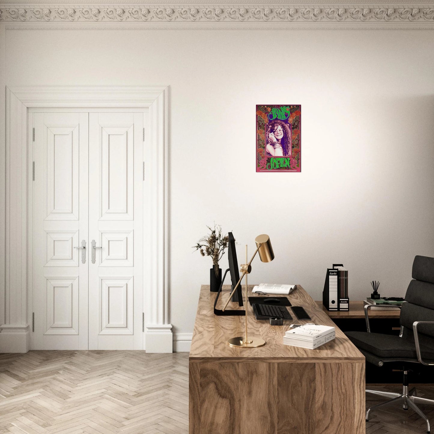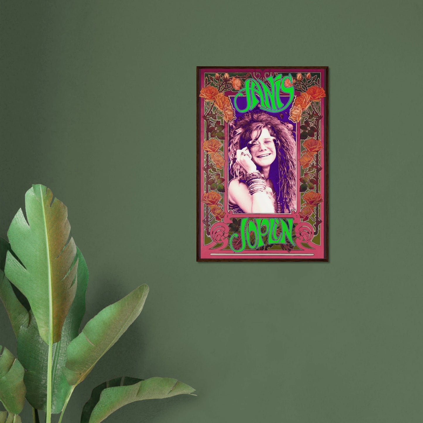 Capture the free-spirited essence of a rock and roll icon with this psychedelic tribute poster to Janis Joplin. Featuring a joyous portrait of the legendary singer, this piece is steeped in the Art Nouveau-revival style that defined the late 1960s. Framed by a cascade of roses and rendered in vibrant, groovy colors, the artwork celebrates Joplin's powerful presence and the "flower power" era she helped shape. It's a timeless piece for any fan of classic rock, 60s counterculture, and the unforgettable "Queen of Psychedelic Soul."