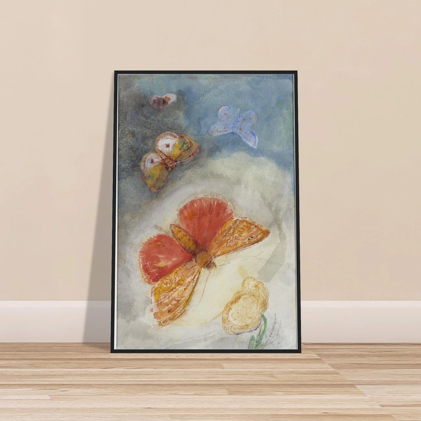 Dreamy Butterfly Painting by Odilon Redon, Papillons et fleur Poster, French Symbolism Wall Art, Ethereal Pastel Nature Print