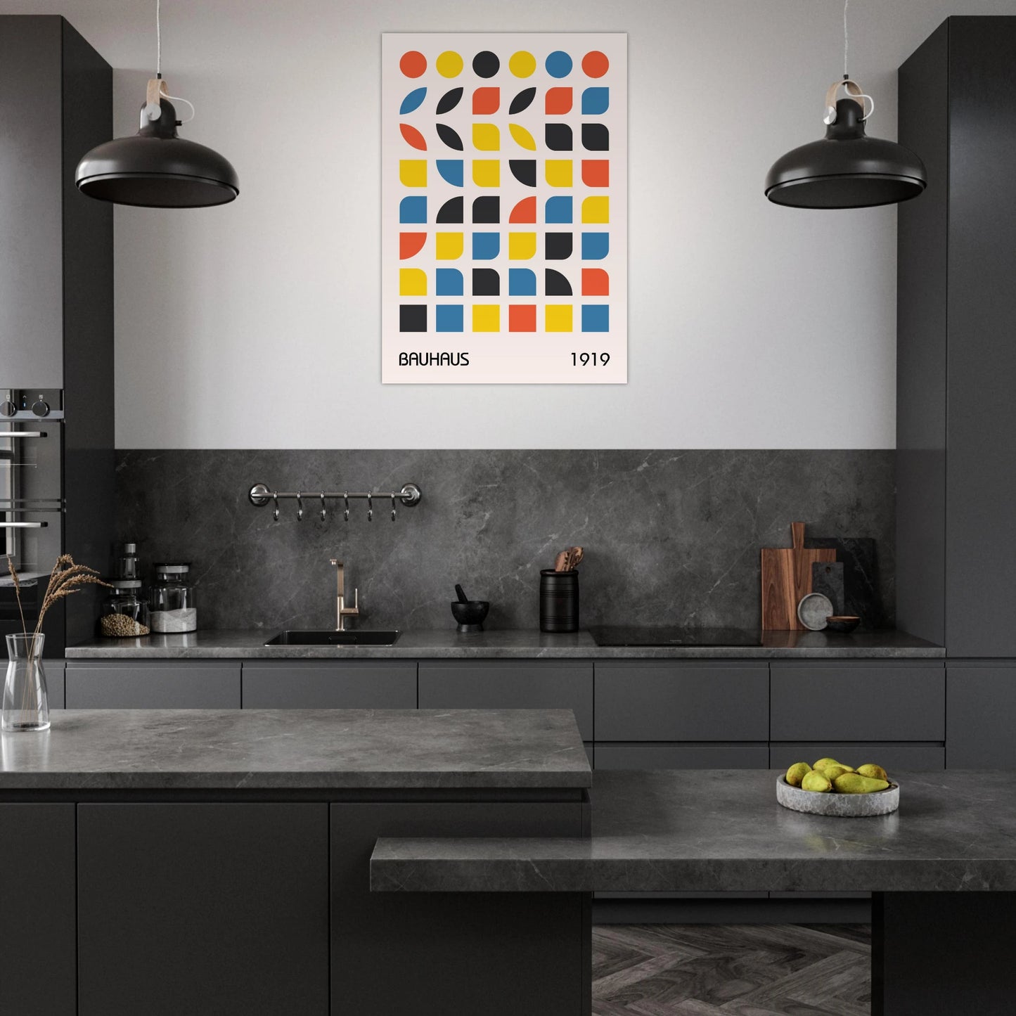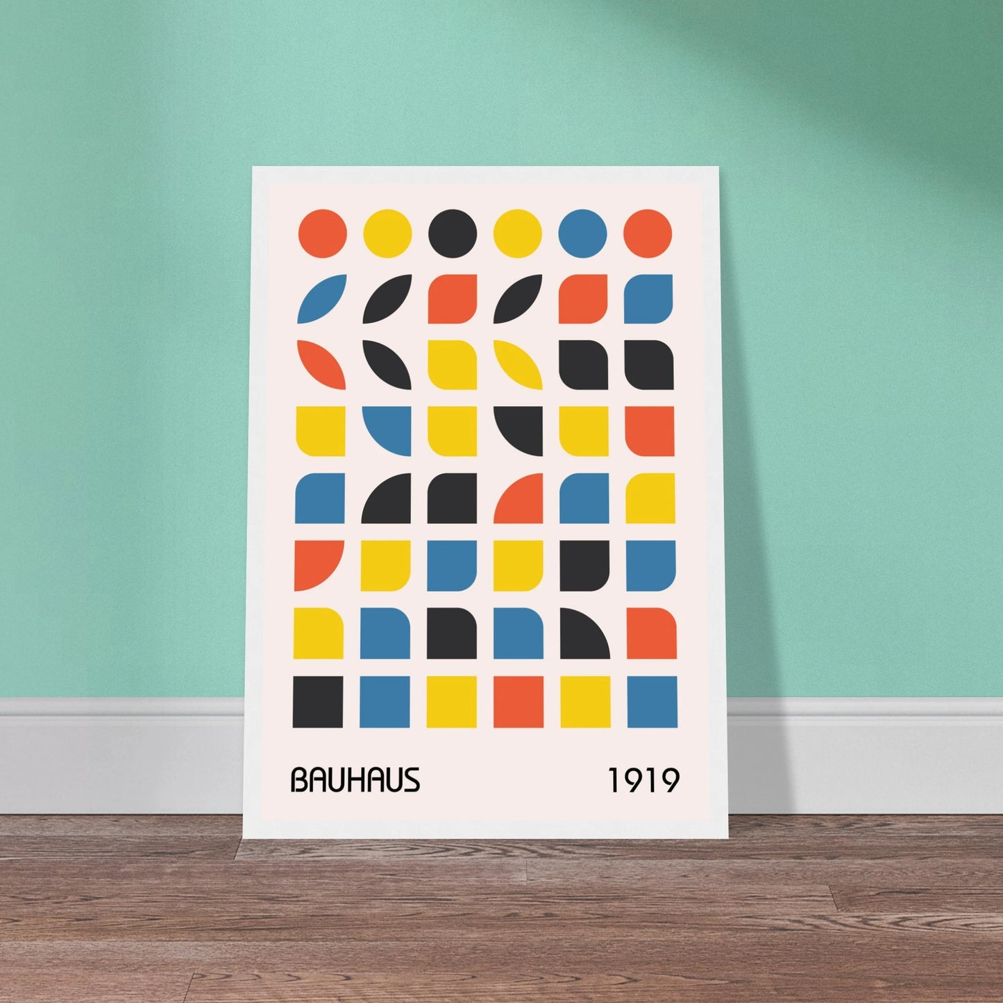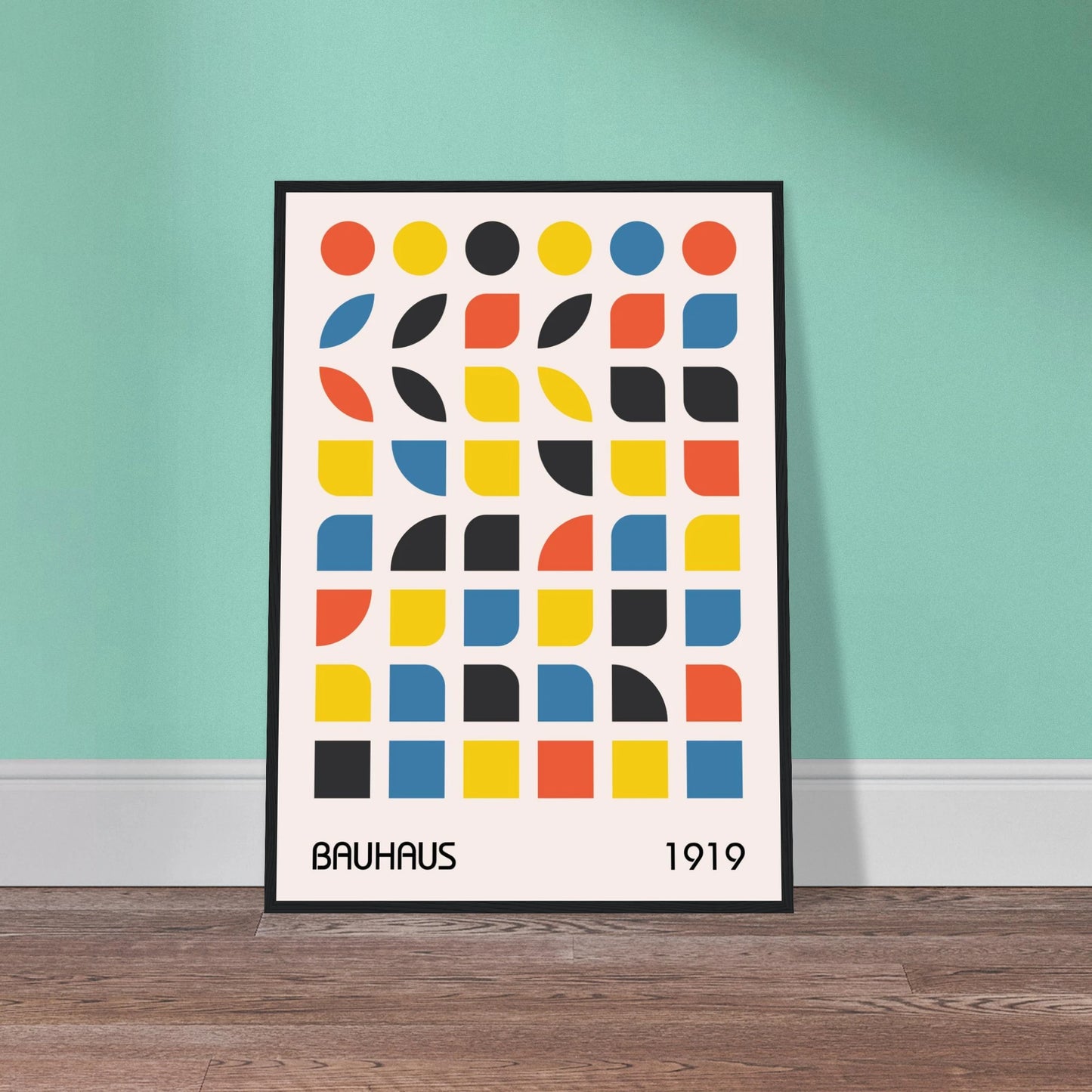 The Bauhaus style originated from the Bauhaus School of Design, founded in Germany in 1919 by architect Walter Gropius. It was revolutionary for merging fine art, architecture, and crafts into a unified modern aesthetic. The Bauhaus philosophy emphasized functionality, simplicity, and geometric forms, stripping away unnecessary decoration to focus on clean lines and purpose-driven design. Despite the school being shut down by the Nazis in 1933, its legacy shaped modern art, graphic design, and interior design worldwide. Bauhaus-style posters—characterized by bold typography, primary colors, and structured compositions—remain timeless icons of the modernist movement.