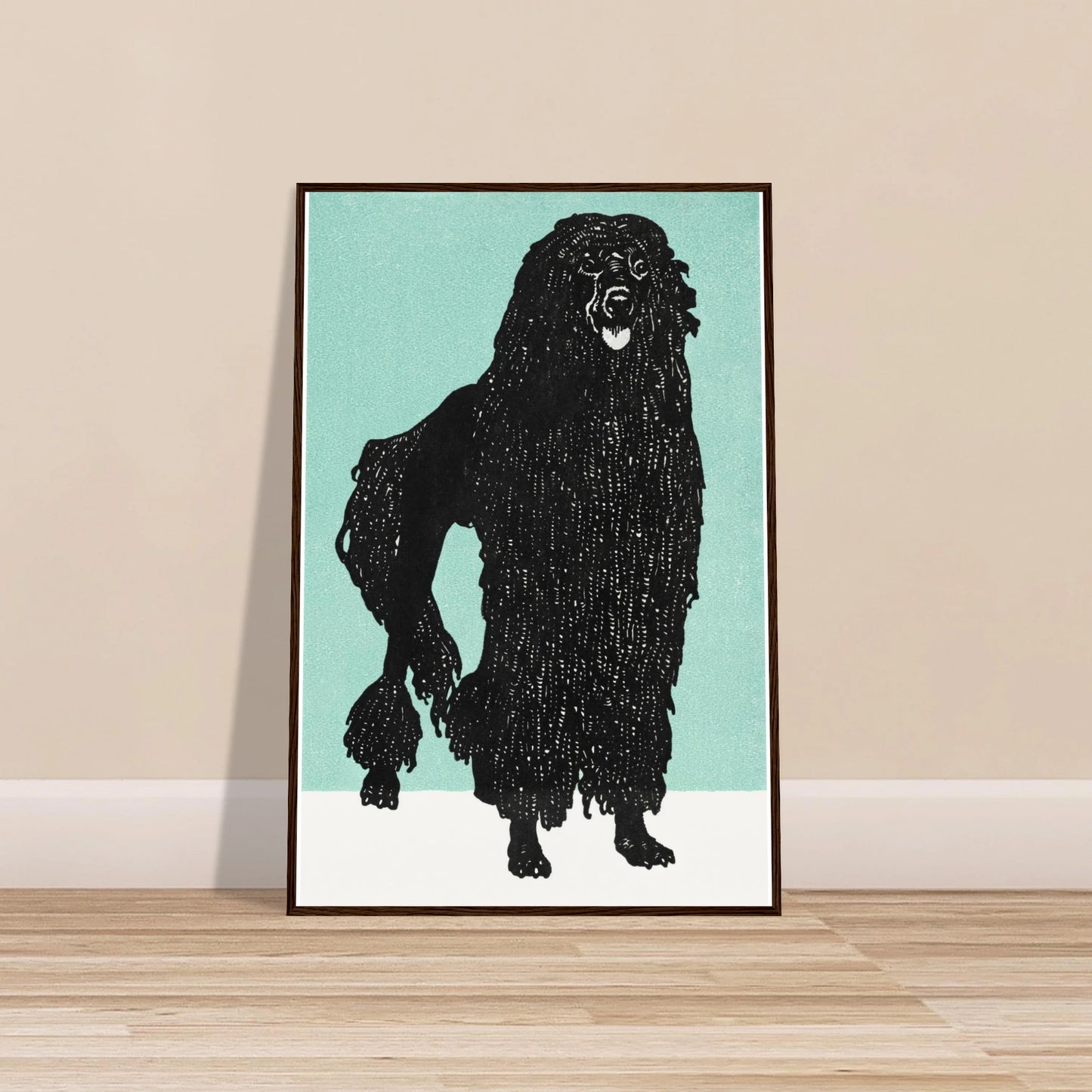 This print depicts a corded poodle, a very popular and high-fashion grooming style in the late 19th and early 20th centuries where the coat was meticulously cultivated into long, dreadlock-like cords. While we now associate the poodle with French elegance, the breed is actually German in origin and began as a rugged water-retrieving dog for hunters. Its name comes from the German word pudeln, which means "to splash." The famous "poodle clip" was first a practical cut, designed to protect the dog's joints from cold water while allowing it to swim freely. This artwork wonderfully captures the moment this practical working dog was being celebrated as a high-fashion icon in modern art.