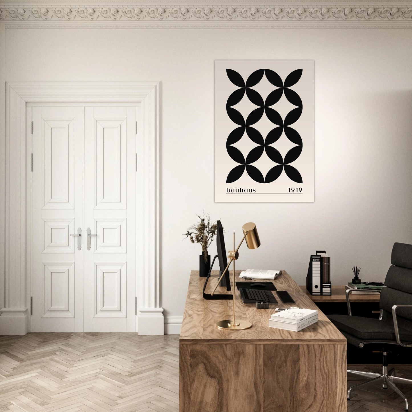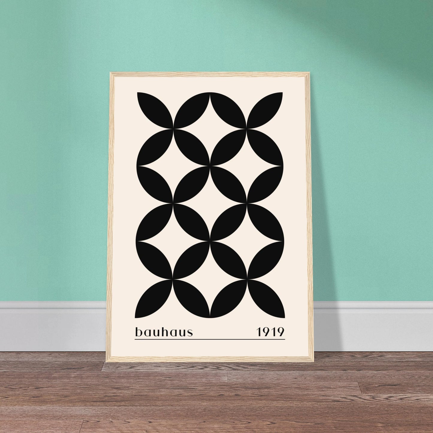 The Bauhaus style originated from the Bauhaus School of Design, founded in Germany in 1919 by architect Walter Gropius. It was revolutionary for merging fine art, architecture, and crafts into a unified modern aesthetic. The Bauhaus philosophy emphasized functionality, simplicity, and geometric forms, stripping away unnecessary decoration to focus on clean lines and purpose-driven design. Despite the school being shut down by the Nazis in 1933, its legacy shaped modern art, graphic design, and interior design worldwide. Bauhaus-style posters—characterized by bold typography, primary colors, and structured compositions—remain timeless icons of the modernist movement.