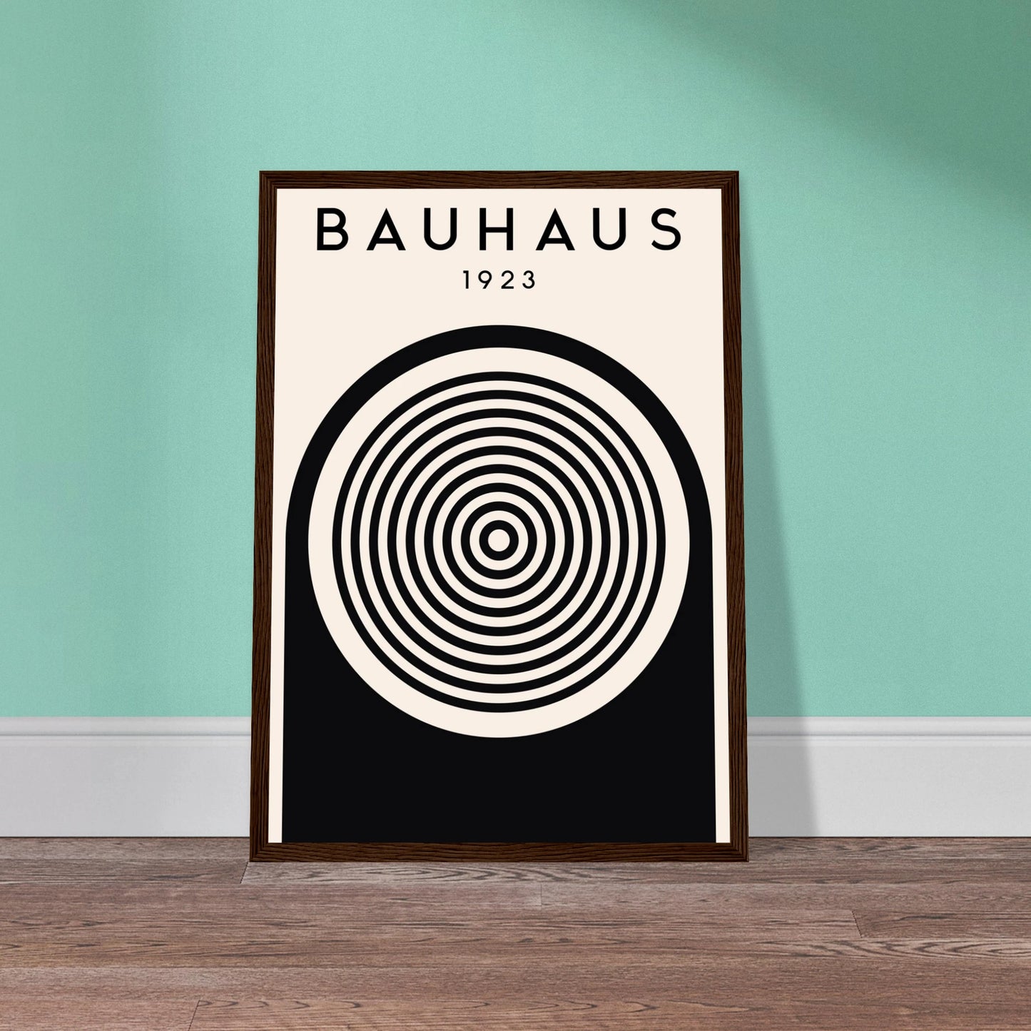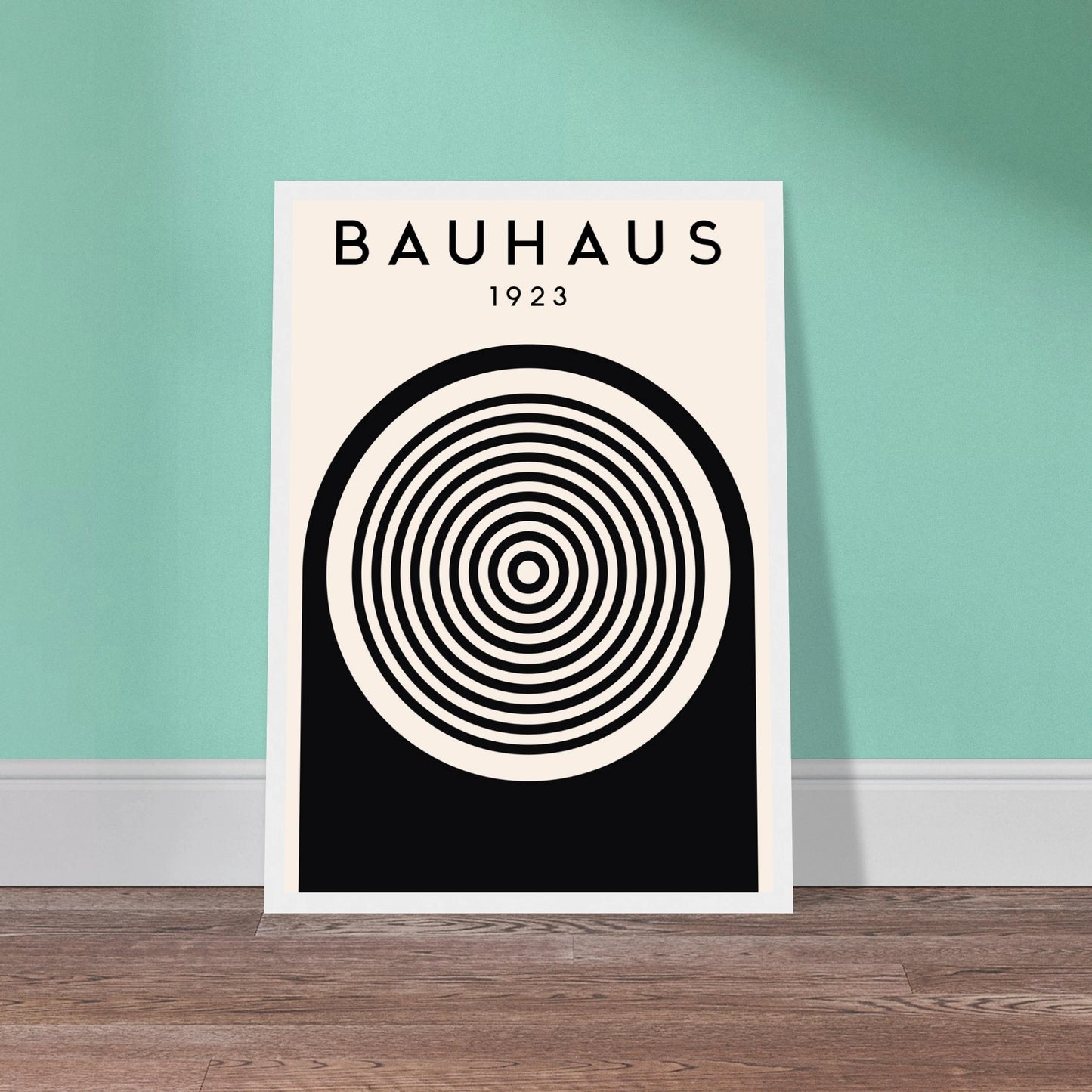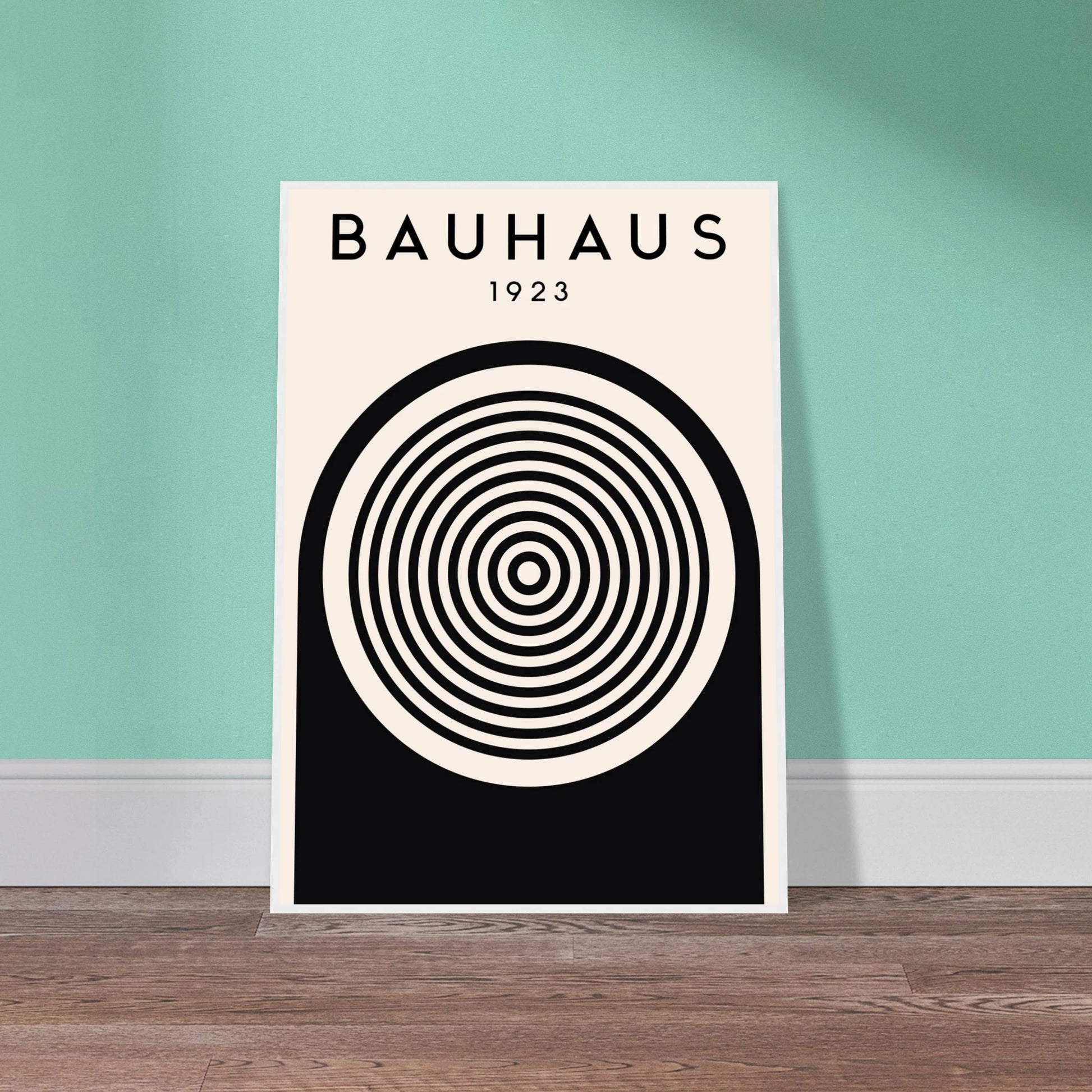 The Bauhaus style originated from the Bauhaus School of Design, founded in Germany in 1919 by architect Walter Gropius. It was revolutionary for merging fine art, architecture, and crafts into a unified modern aesthetic. The Bauhaus philosophy emphasized functionality, simplicity, and geometric forms, stripping away unnecessary decoration to focus on clean lines and purpose-driven design. Despite the school being shut down by the Nazis in 1933, its legacy shaped modern art, graphic design, and interior design worldwide. Bauhaus-style posters—characterized by bold typography, primary colors, and structured compositions—remain timeless icons of the modernist movement.