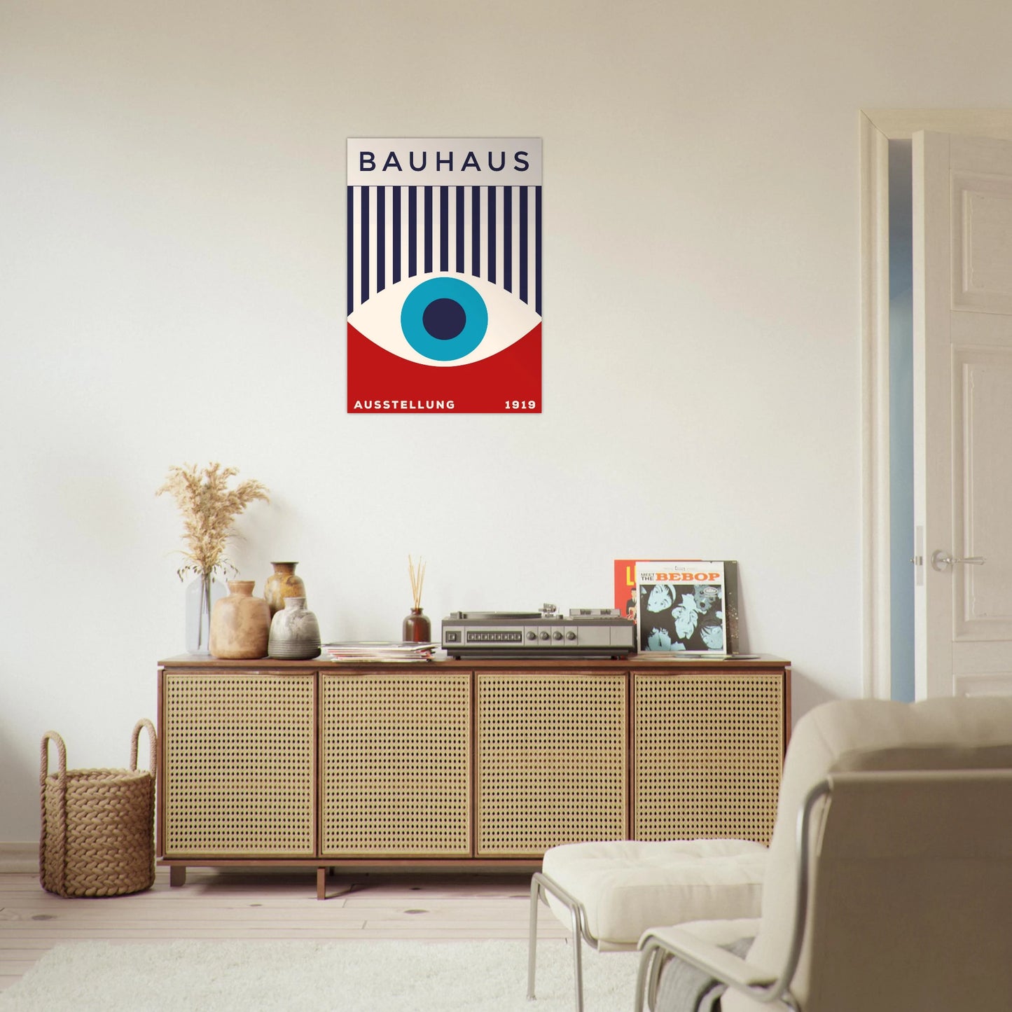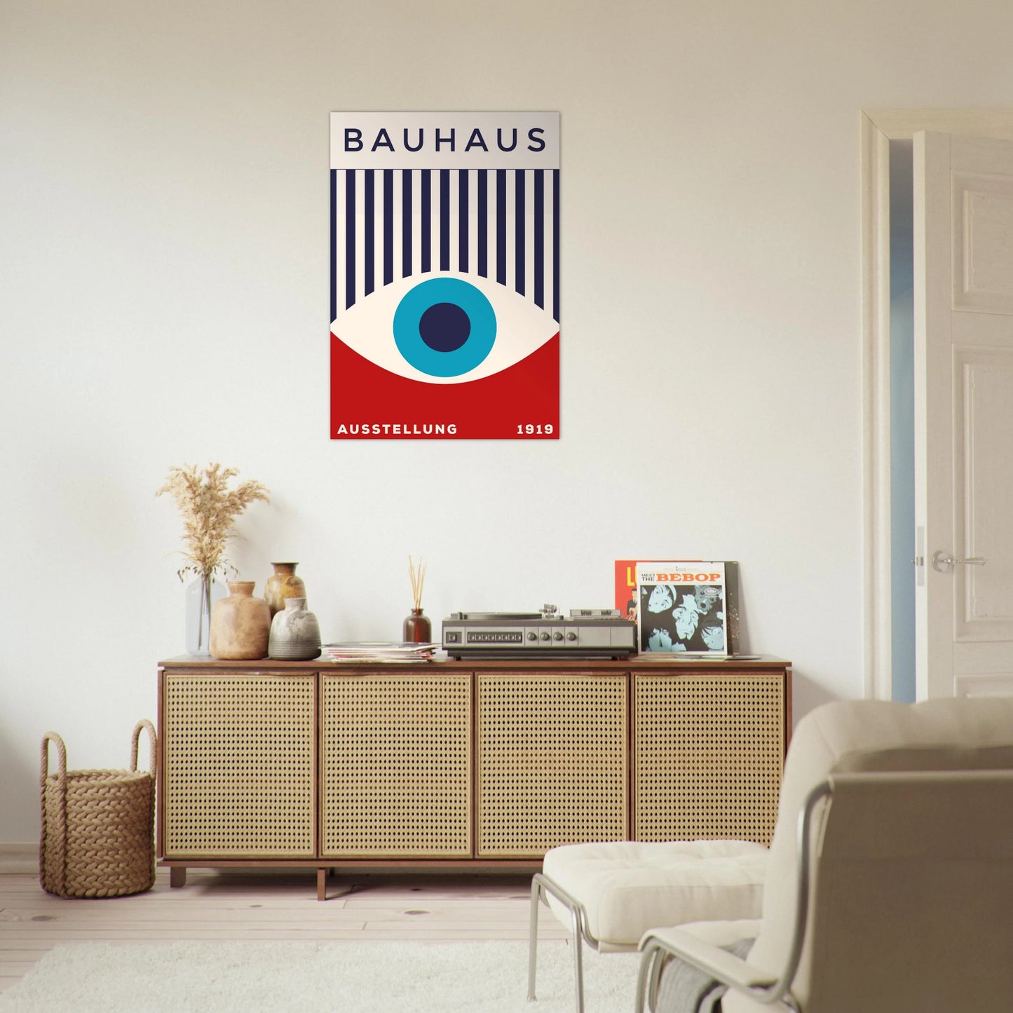 Evoking the form of an eye with bold bars and a central circle, this print is both symbolic and architectural—an homage to Bauhaus’ watchful, progressive gaze.