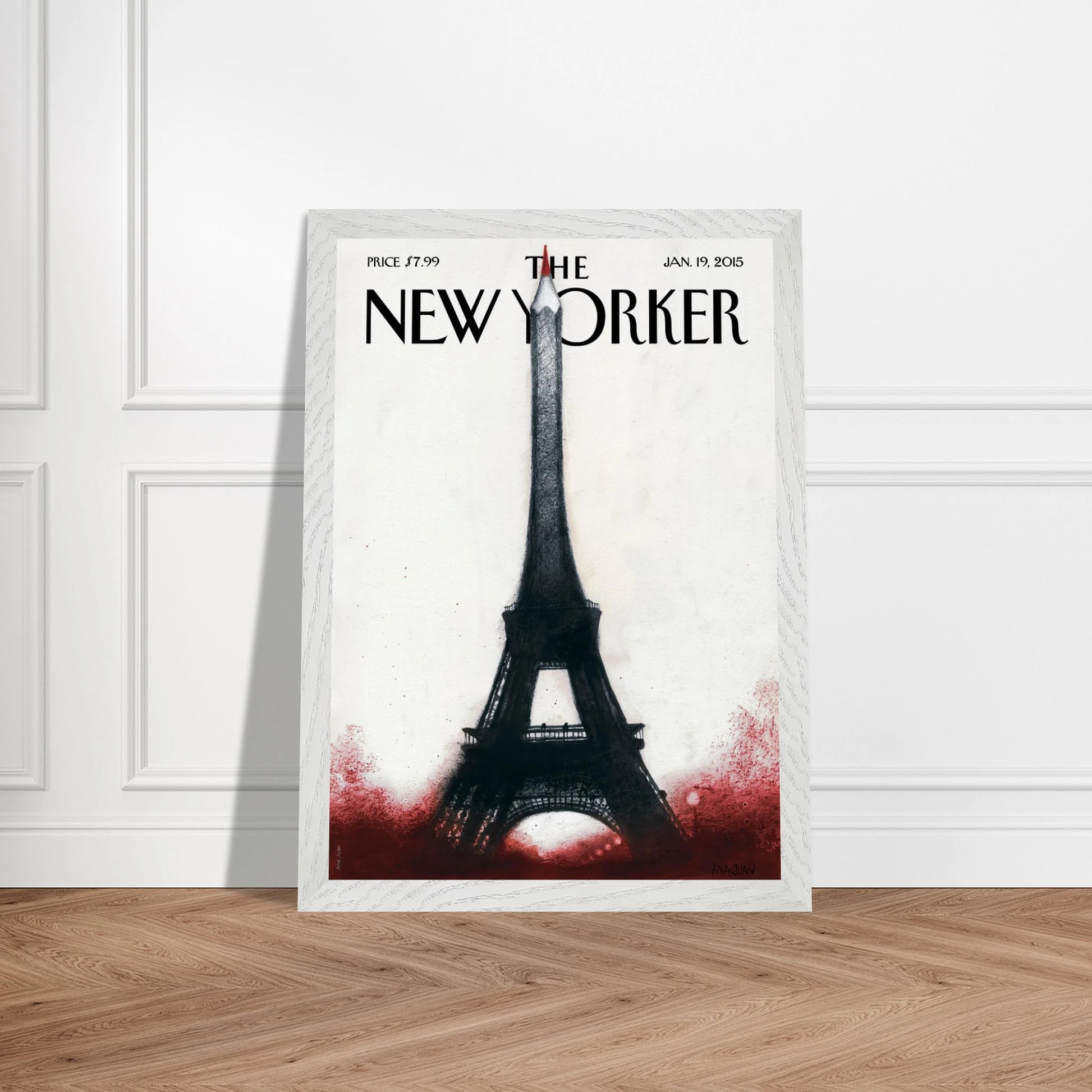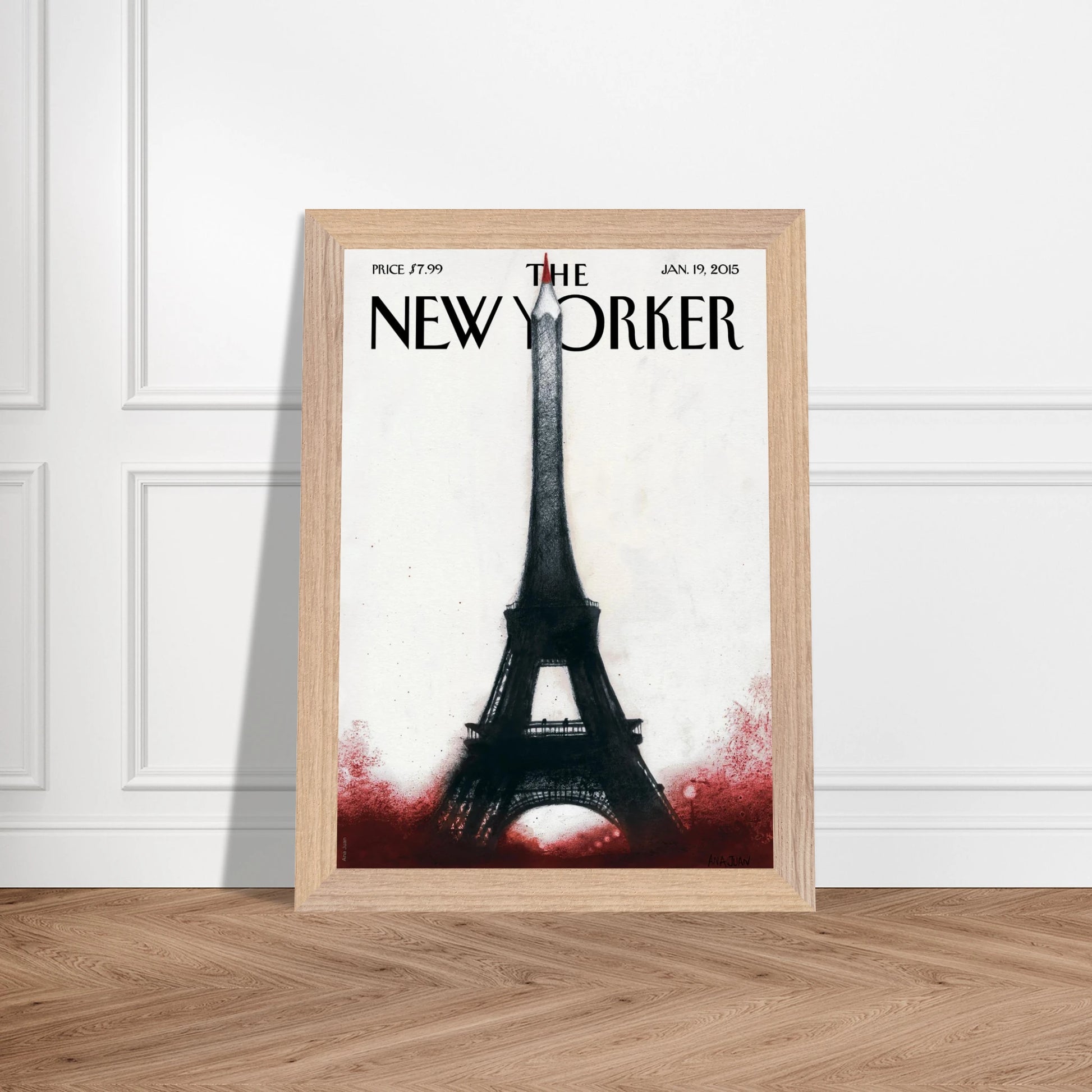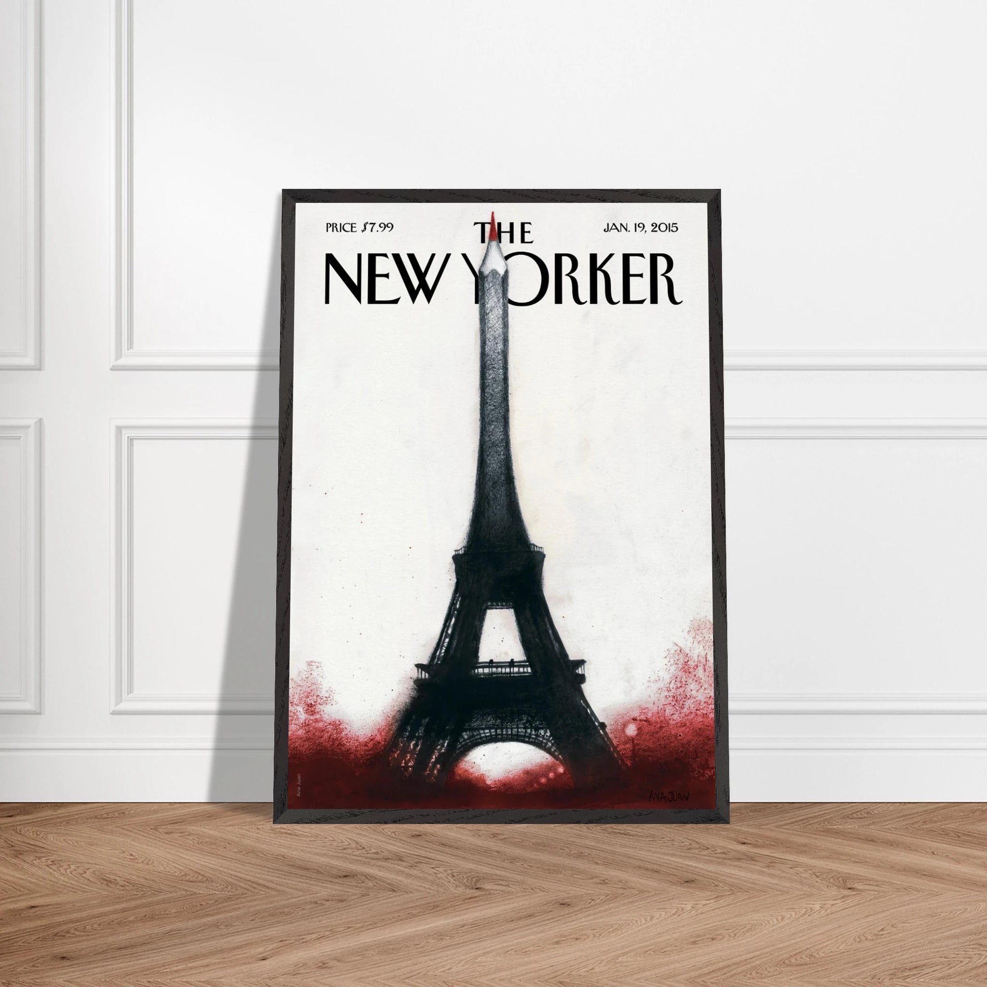 This powerful cover for the January 19, 2015, issue of The New Yorker is by artist Ana Juan and is titled "Solidarité." Created in the immediate aftermath of the terrorist attack on the offices of the satirical newspaper Charlie Hebdo in Paris, the illustration depicts the Eiffel Tower, with its spire seamlessly transformed into the sharpened point of a pencil. The base of the iconic landmark is stained with a blood-red color, evoking the violence of the massacre.