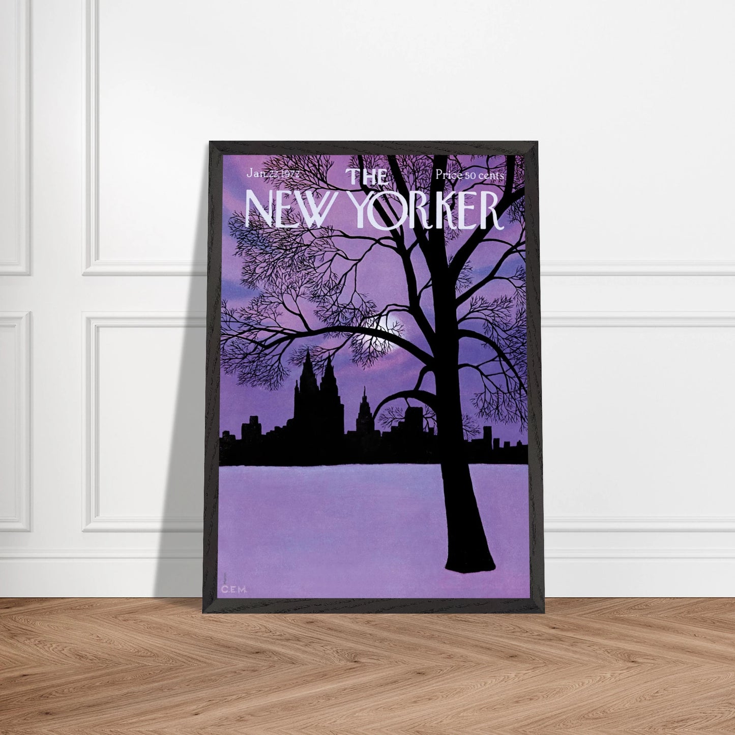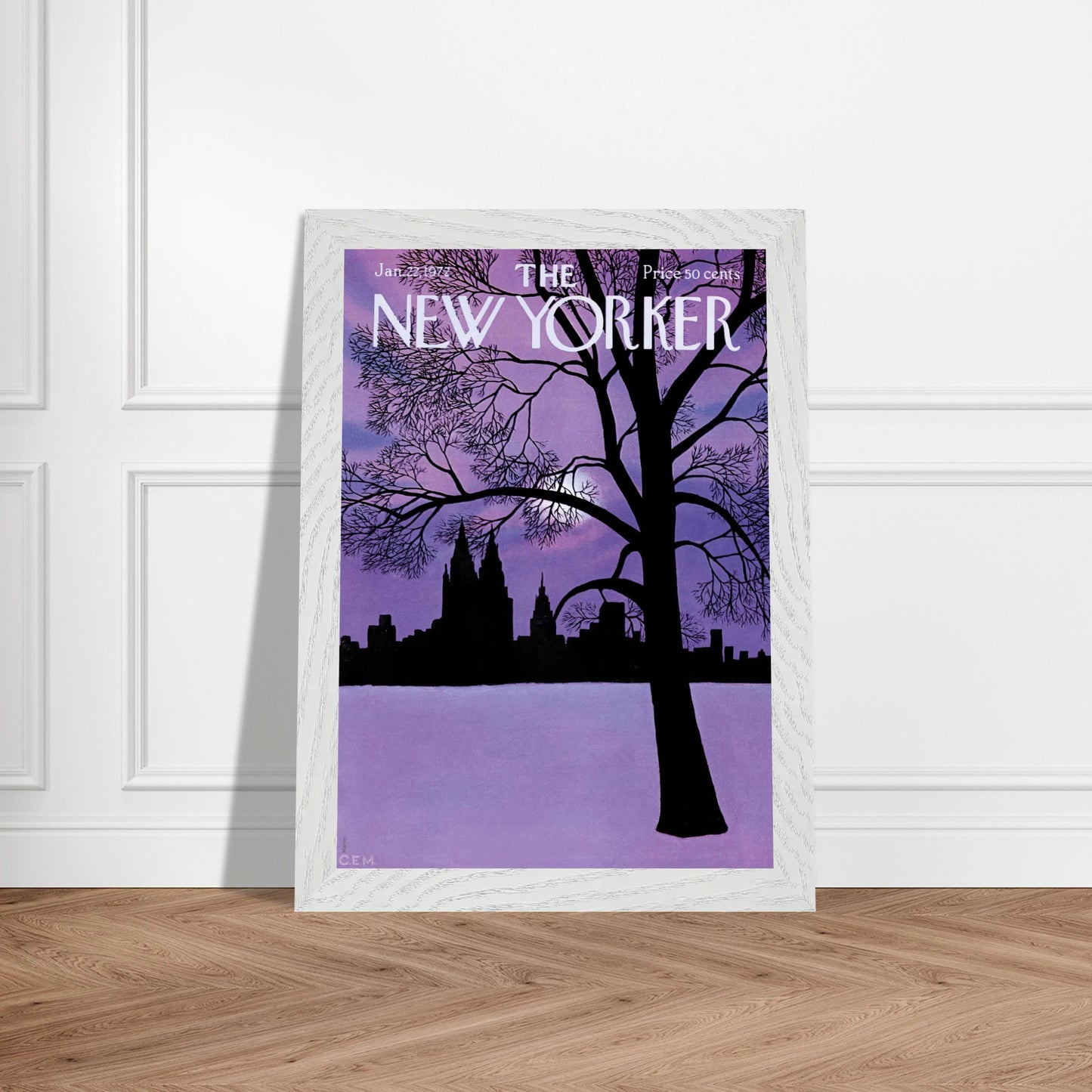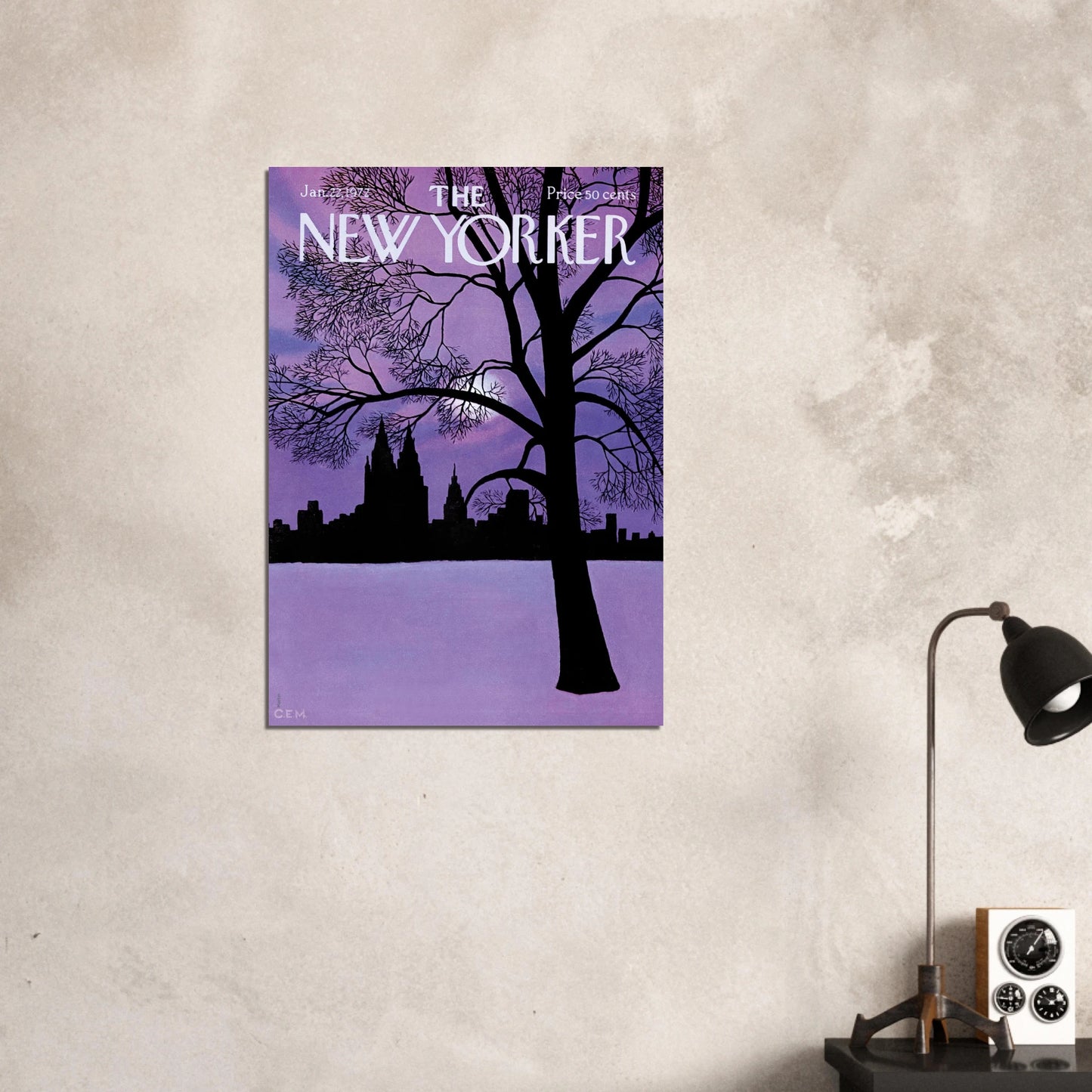 The artist, Charles E. Martin (who signed his work C.E.M.), was celebrated for his ability to capture the quiet moods and seasons of New York City. This cover is a masterful exercise in atmosphere and composition. The power of the image lies in its minimalist, monochromatic color palette, where varying shades of purple evoke the deep cold and tranquil beauty of a winter evening. By placing the natural, intricate form of the tree in dialogue with the famous man-made skyline, Martin creates a peaceful urban pastoral. It’s a contemplative piece that forgoes the city's famous energy to celebrate its capacity for stillness and poetic beauty.